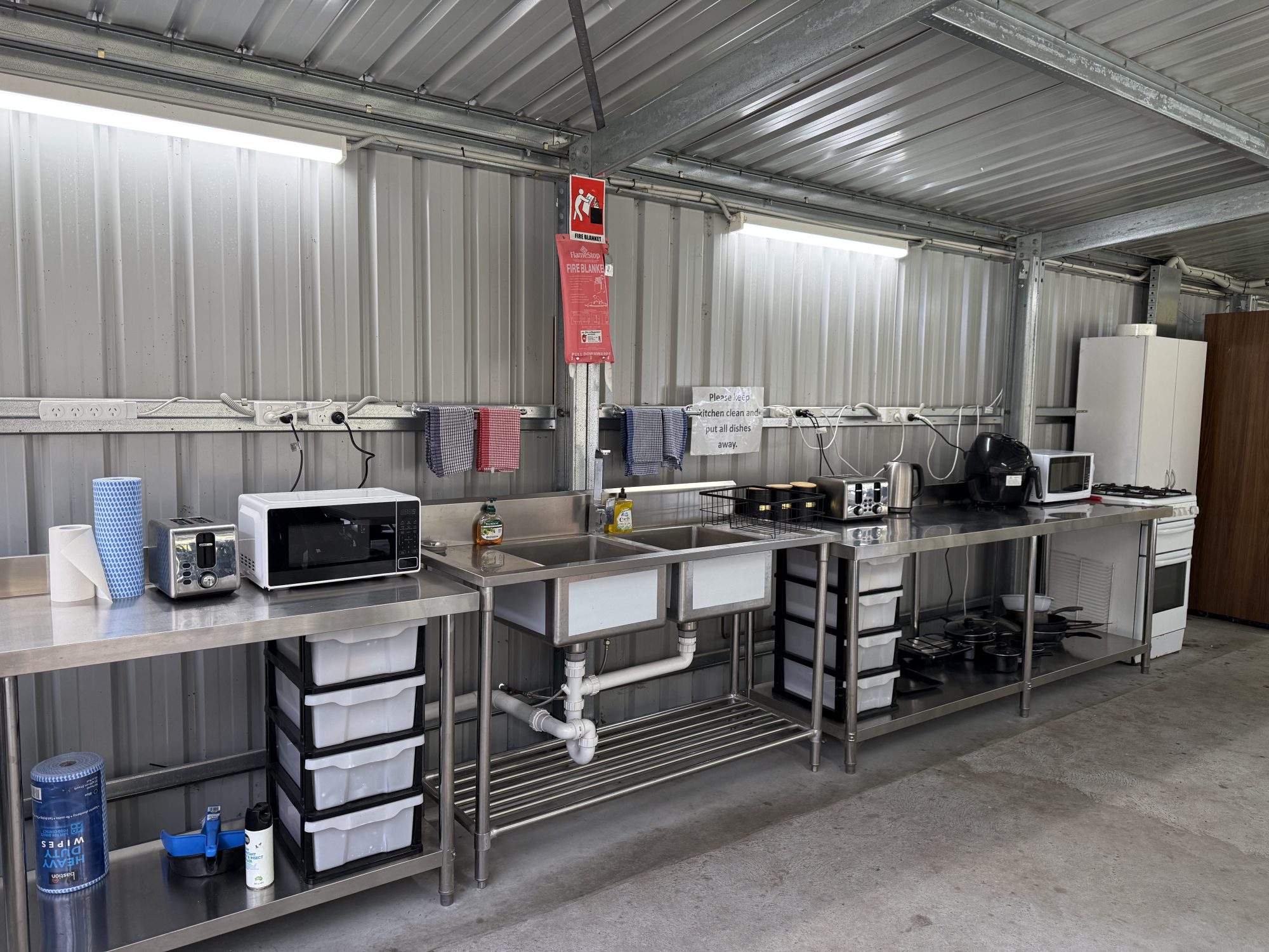 The new amenities building has everything you need for cooking and cleaning.