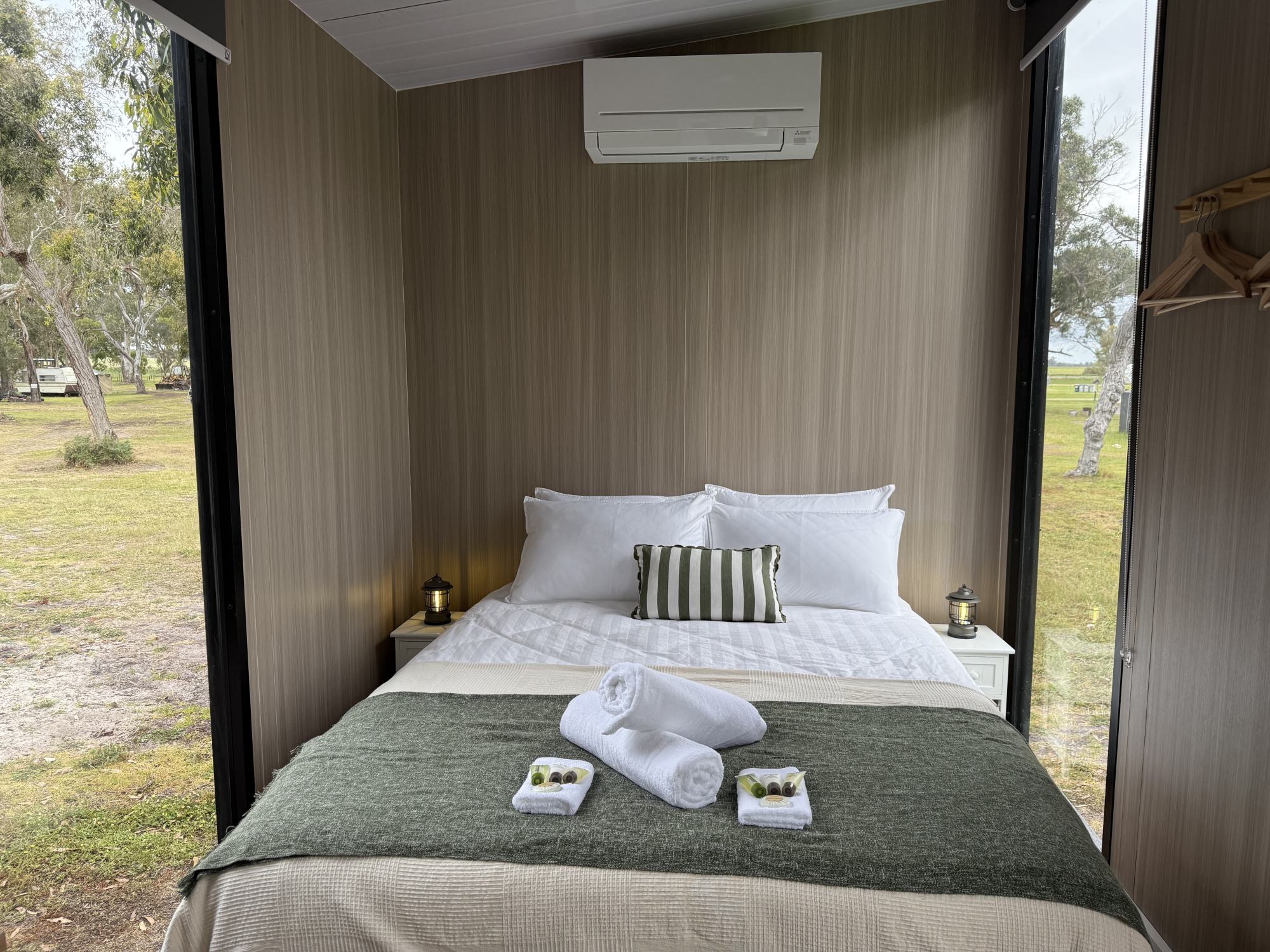 Both Bush Hideaways are located close to the new amenities building with additional showers and fantastic kitchen facilities, and they each have self-contained bathrooms as well.